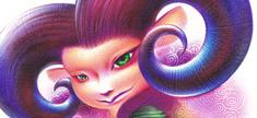 Goat Gal (Goat 1 of 4) 2014, ballpoint pen & ''dry'' ballpoint pen on paper, shown cropped. An example of ''colorfully detailed'' Mace,