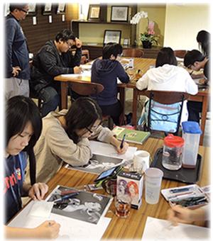Mr. Sanchez is among the artists who were featured in the book The Art of Ballpoint, by Matt Rota. Originally published in English in 2015, it has since been translated into French, Italian, German, Chinese and Spanish. Its Spanish edition is among the books available at Youth Library CUBIT, where it became recommended reading in the wake of Ms. de Castro Hoyos' workshop. Ballpoint artwork by Spanish illustrator Chamo San is featured on the cover of the Spanish edition. Rota, a professional illustrator, also teaches drawing at School of Visual Arts in New York, and drawing 'exercises ' make up chapters of his book. Art professors once frowned upon the use of lowly ballpoint pens in their drawing classes, but, it would seem, that may no longer be the case, at least with instructors like Rota.