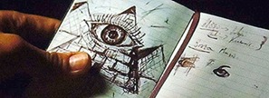 Reporter Bob Wilton's (Ewen McGregor) mindless ballpoint doodle (pictured above) is later revealed to have foretold the logo of a goat-starer's (George Clooney) troop.