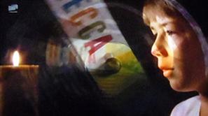 William follows the instructions of big sis' strategically inserted note, to "listen to Tommy with a candle burning, and you'll see your entire future", kicking off an elaborately layered film montage anchored by hypnotic spinning record labels (vintage Decca, pictured) accompanied musically by the trippy intro chords to The Who's "Sparks". The sequence also conveys an age jump, cinematically and biographically, beginning with young William staring into the candle flame. Close-up pans of a looseleaf binder show doodles of teenage affection, obsession or allegiance; in William's (Crowe's) case Lester Bangs, Black Sabbath and the like. All the while, the Decca labels (several layers worth) spin round and round, closing with a ballpoint pen adding the final touches to a Led Zeppelin logo (pictured), leading to William a few years older (Patrick Fugit)...