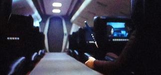 En route to a space station on a space jet, a ballpoint (space?) pen floats free from a passenger's pocket, then fetched and returned by a space stewardess.